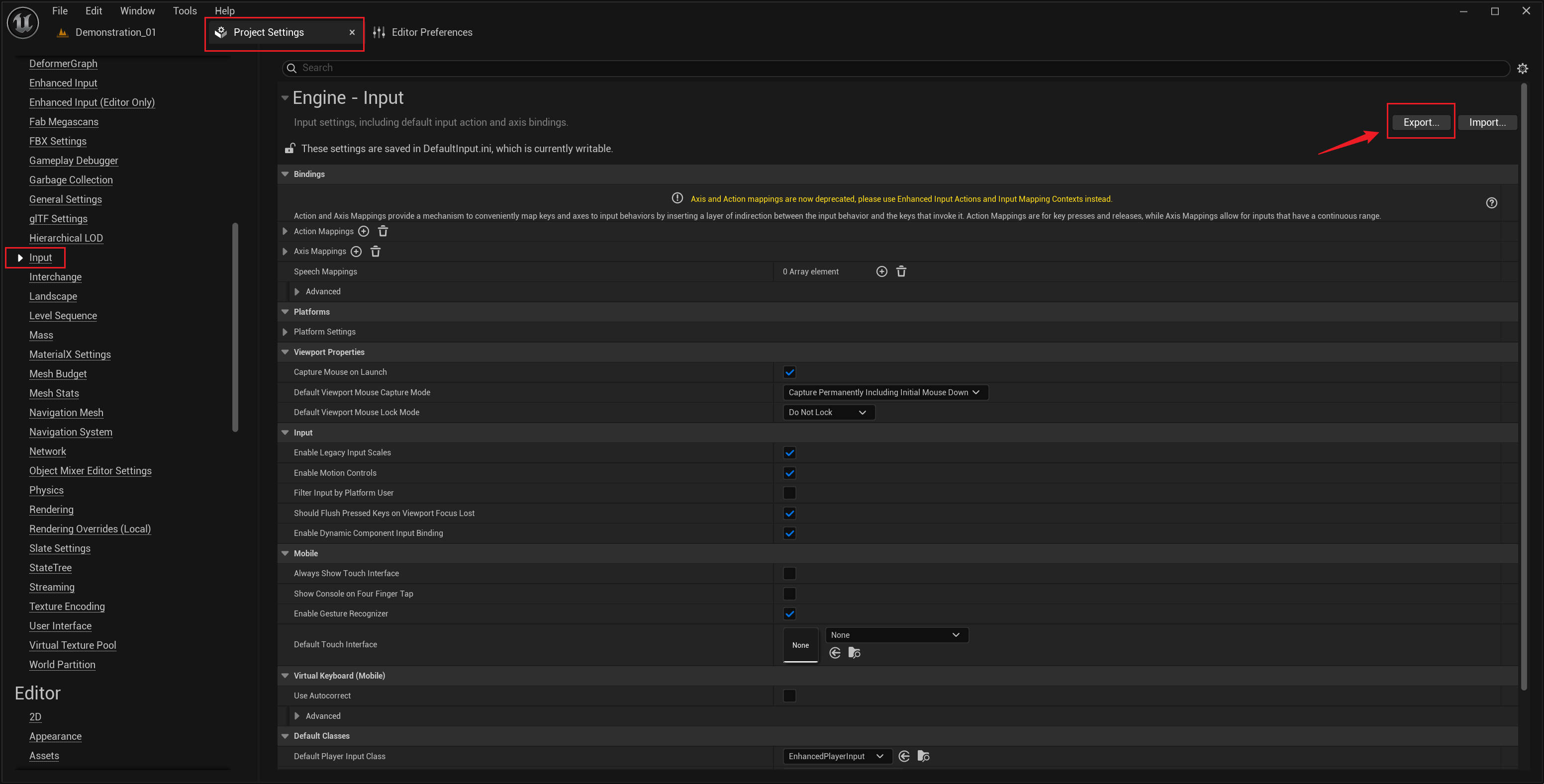 此外,还需导出此项目的 input 配置,在项目设置中: