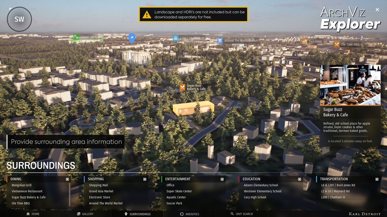 虽然这是一个针对于房地产、建筑可视化展示的Demo,但是里面包含了许多“汽车配置器”相关的功能项,如:清晰且注释详尽的蓝图;用户友好的界面,带有小部件动画、 指南针和媒体库;具有平滑缩放和旋转功能的轨道相机 ;易于自定义兴趣点 (POI) 参与者。感兴趣的可以点进链接去看下官方文档。